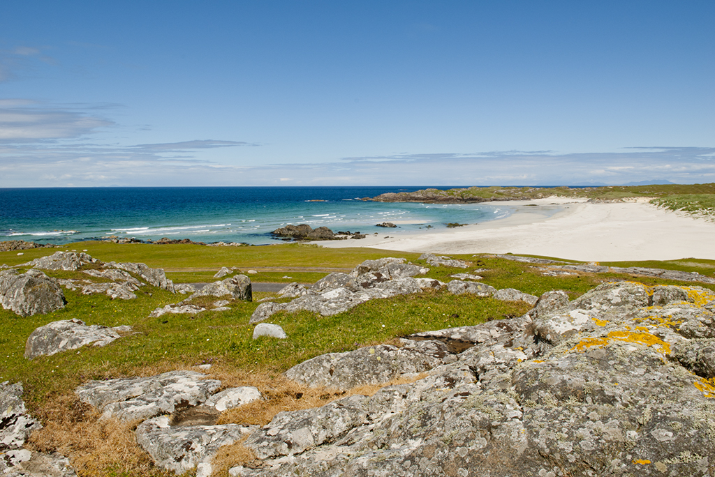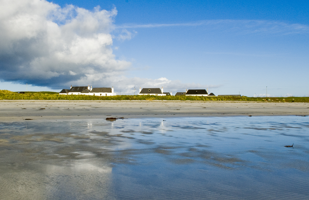 If you seek tranquillity, freedom of space and clean pure air, the Isle of Tiree has it all. Though only 10 miles long and 5 miles wide, the sky and sea stretch from horizon to horizon. With no woodland and only three sizeable hills on an otherwise flat landscape, there is nothing to obscure the view. And the only sounds you are likely to hear are the waves lapping on the vast expanses of white sand beaches and a myriad of birdcalls.